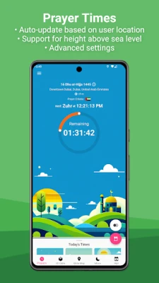 Kwa nyakati za sala, Miqat hutumia fomula za kipekee zinazotoa usahihi wa milisekunde. Kipengele chake cha "Advanced Calculations" huenda mbali zaidi kwa kuzingatia shinikizo la anga, joto, na urefu wa kifaa chako kutoka usawa wa bahari, na hivyo kuhakikisha usahihi usio na kifani, hasa kwa wale wanaoishi katika majengo marefu au maeneo ya milimani. Hata kwa maeneo yaliyo karibu na ncha za dunia ambapo ishara za nyakati za sala hupotea, Miqat inatoa mbinu mbadala za hesabu. Kuhusu Qibla, Miqat huamua mwelekeo sahihi kwa kuzingatia jiometria halisi ya dunia. Ramani yake ya Qibla huonyesha mwelekeo kwenye ramani shirikishi, huku "3D Qibla" ikikuletea uzoefu wa uhalisia uliodhabitiwa, ikiwemo kutembea ndani ya Msikiti Mkuu wa Mecca kupitia panorama ya digrii 360, au kuamua Qibla kulingana na Jua, Mwezi, nyota na sayari. Muhimu zaidi, Miqat hukujulisha mara moja iwapo uga wa sumaku usio wa kawaida utagunduliwa, ikikukinga na makosa yanayosababishwa na dira za simu.