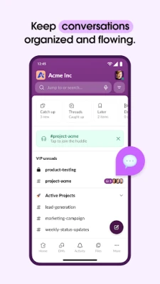 Slack inakuletea jukwaa la kipekee la kuunganisha timu yako na kuongeza ufanisi wa biashara. Ni mahali pako pa kati ambapo unaweza kuendesha mikutano, kushirikiana kwenye nyaraka, kushiriki faili kwa urahisi, na kufikia programu unazozipenda zote kutoka eneo moja. Sasa unaweza kufanya kazi kwa ukaribu na washirika wa nje na kutumia teknolojia ya akili bandia (AI) na mawakala mahiri ili kusonga mbele kwa kasi na werevu zaidi. Ukiwa na Slack, kila kitu unachohitaji kukuzia biashara yako kinapatikana kiganjani mwako.